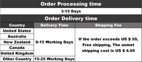 * These are estimates based on the delivery time of most orders. The actual processing and transportation time may be shorter or longer, depending on the customs clearance speed and local delivery speed.